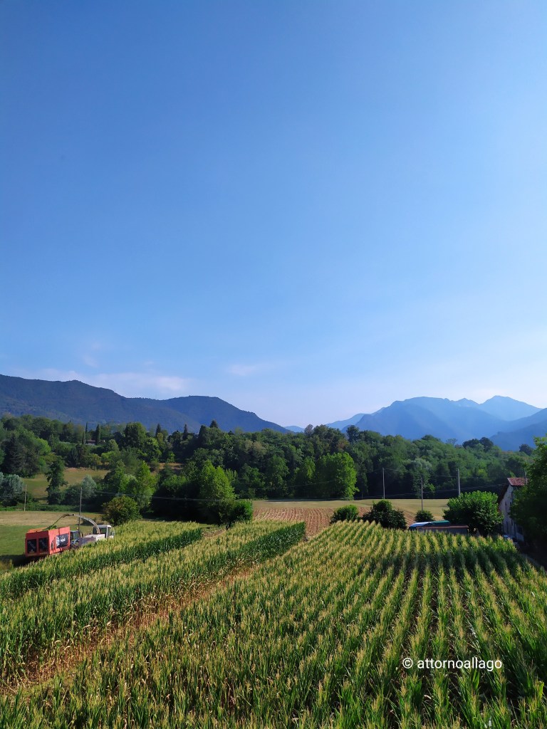 Sabato scorso ci siamo svegliati con uno strano rumore di macchine agricole. Ho pensato che fosse strano che tagliassero l’erba dato che con questa siccità non è più cresciuta, almeno non abbastanza da doverla tagliare.