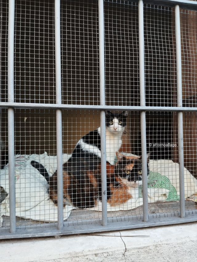 Nonostante passassi spesso di lì, non mi ero mai accorta della loro presenza – forse non c’erano, o non stavano alla finestra, oppure le ante erano chiuse – fatto sta che la prima volta che li ho visti sono rimasta affascinata dalla loro tenerezza. C’è da dire che in quella occasione se ne stavano acciambellati uno sull’altro a formare uno Yin e Yang felino.